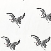 内側に大胆に施された鶴の総柄プリントは羽織った際にふと覗く裏地が主張する「裏勝り」の美意識を体現しています。