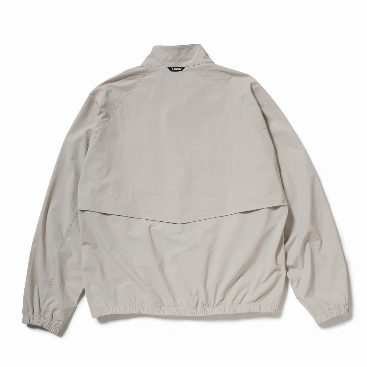 CORDURA RIP 2WAY 生地のトラッカージャケットです。撥水とストレッチ機能を併せ持つアイテムです。立ち襟とラグラン袖に、バックの切り替え部分がトレンチコートで良く見られる仕様になっています。