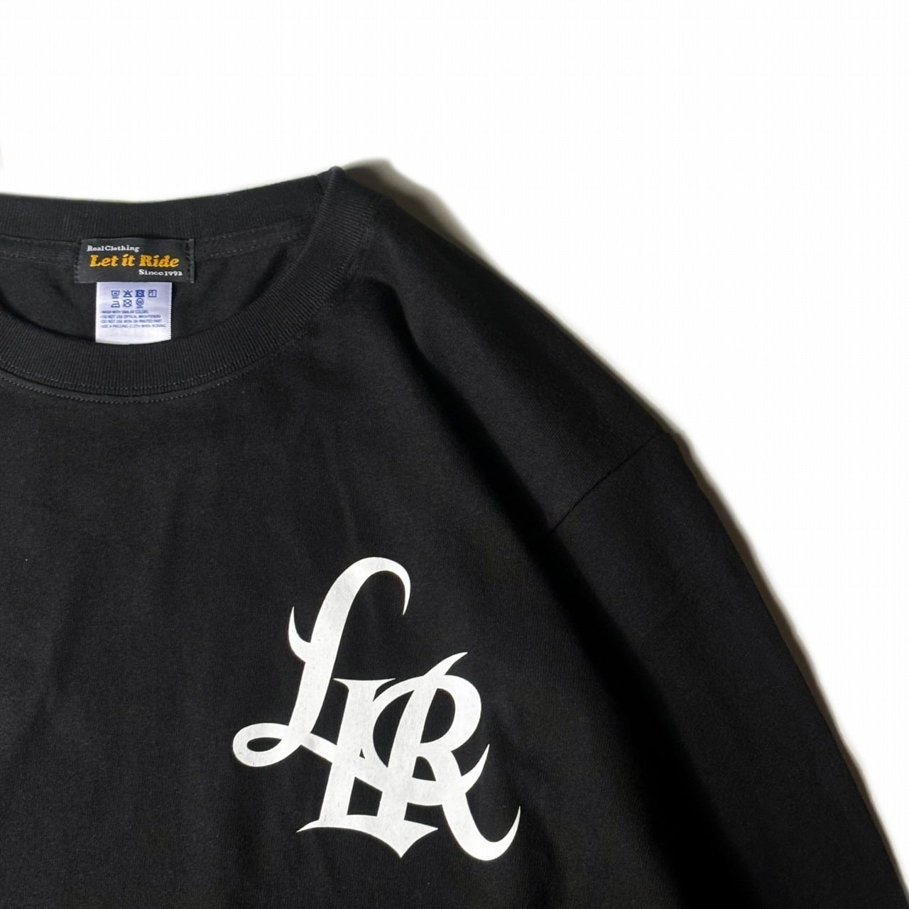 左胸とバックにグラフィックロゴをプリントしたLS-Tシャツ。Let it Rideのブランドロゴがバランスよく配置されています。ベーシックなシルエットのロングスリーブ T-シャツなので、使い勝手のよいアイテムです。