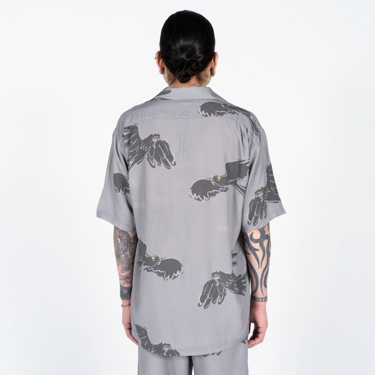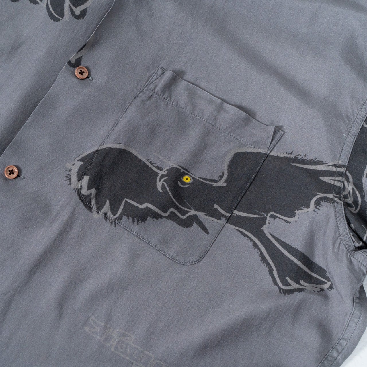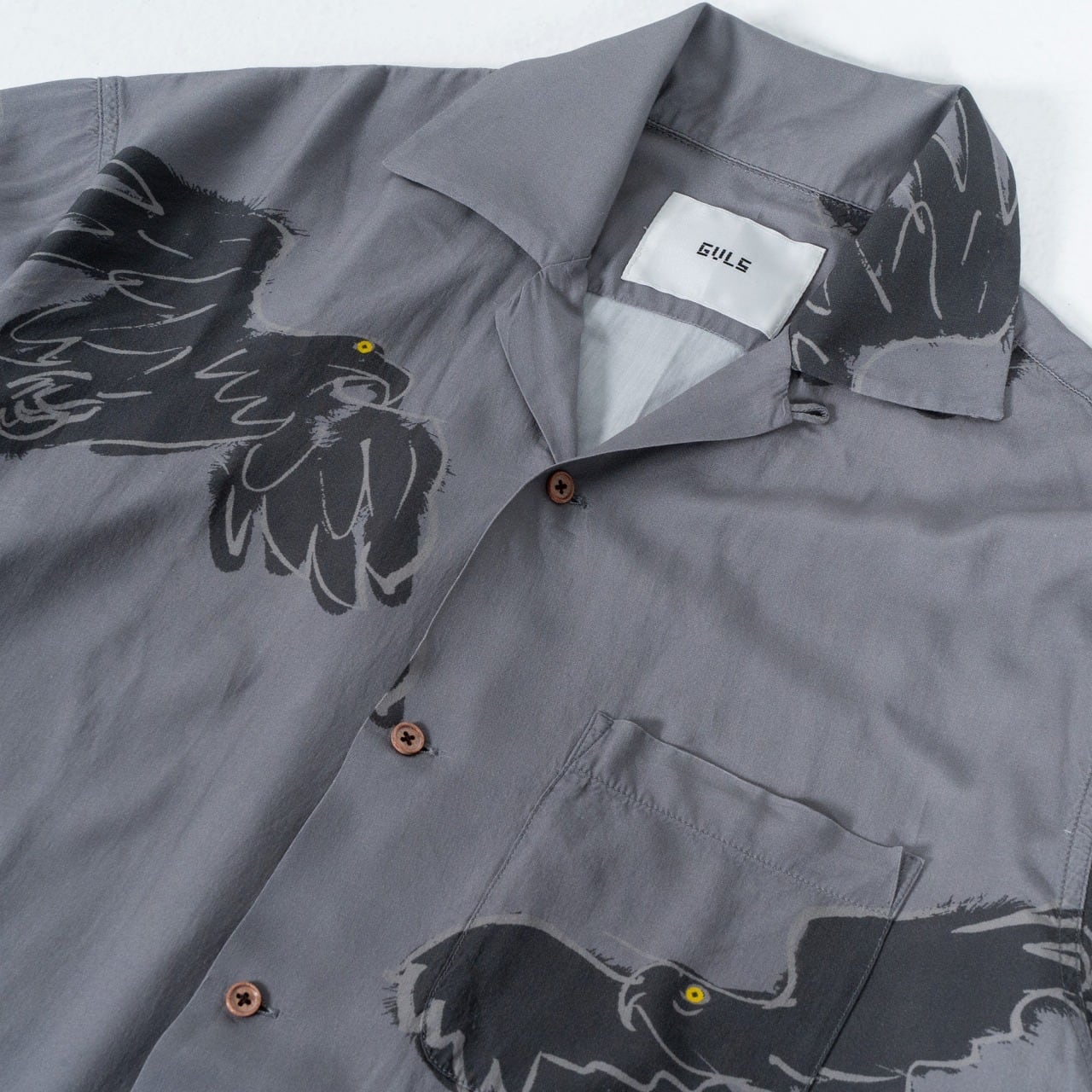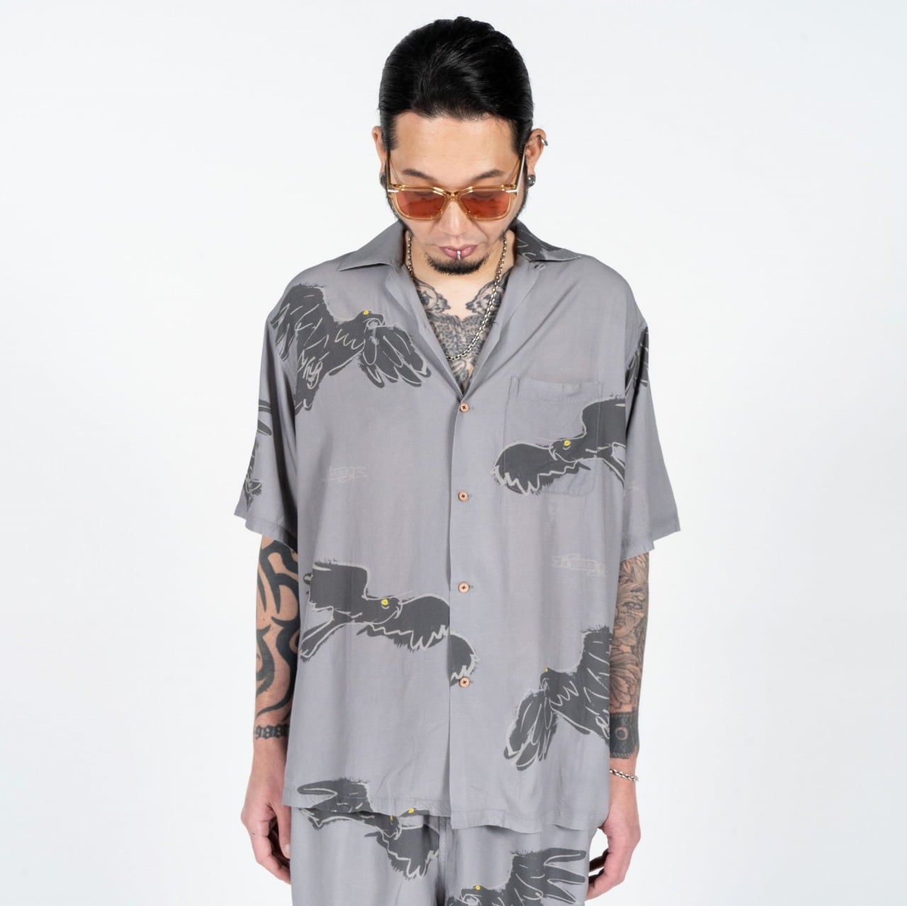オリジナリティのある中村達也氏手描きのイラストレーションがデザインされた、オリジナル生地のアロハシャツ。鳥のイラストの、その自在に飛び回る姿、空気をそのまま まとえるよう、大きめの柄・色・素材の軽やかさにこだわったアイテムになっています。ゆったりとしたサイジングです。